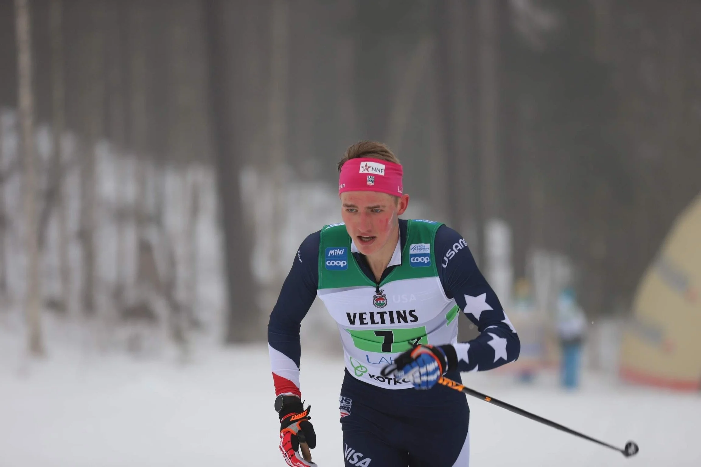 Race day I started testing skis 90 minutes before my race, because my wax tech Karel needed time to prepare 2 pairs of skis. These guys work twice as hard on skiathlon days! Karel nailed the skis, and I was psyched to have confidence in them. I was lucky to be starting bib 12 (!) in this mass start, based on my World Cup distance points, so I had a good spot for the beginning of the mass start. In Lahti the courses have really steep climbs and descents, so big packs tend to “accordion” a lot where they spread out on downhills and bunch up at the beginning of the uphills. This makes it way easier to ski near the front versus the back. My main goal for the classic was to ski as relaxed as possible without losing the group, and the group mostly stayed together so this worked out well. I had to fight to keep my spot a little bit but generally it wasn’t too bad.